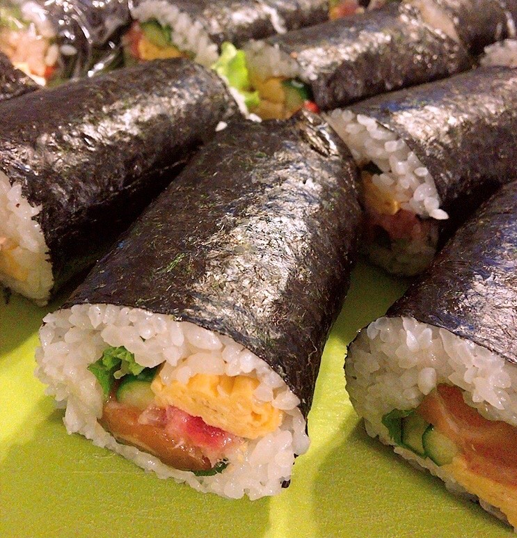 まぁ、スーパーで買ったらええわ~と思っていたのですが、お昼の3分クッキングでちょうど恵方巻を作っていて、意外とできるんちゃうん?と思い、この歳で初めて恵方巻を作りました!